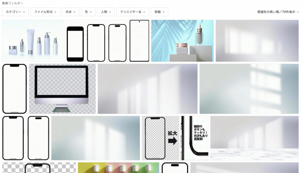 モックアップの素材だけでなく、人物写真等も高品質でダウンロードすることができます。